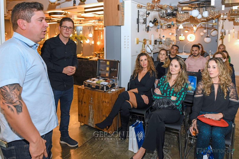 F2 ILUMINAÇÃO promoveu palestra com profissionais da arquitetura e decoração, para apresentar os produtos da WEG Home. Avenida Vereador Toaldo Túlio, 1202 | Loja 4 | Santa Felicidade