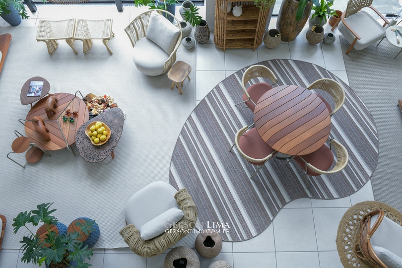 Além do mobiliário autoral, a Raffinato apresenta uma linha completa de acessórios para finalização de ambientes — almofadas, vasos, objetos decorativos, bandejas e peças únicas em materiais naturais, como vasos de barro antigos e cestarias artesanais. Cada detalhe carrega o DNA do feito à mão e o olhar contemporâneo que definem o universo da marca.